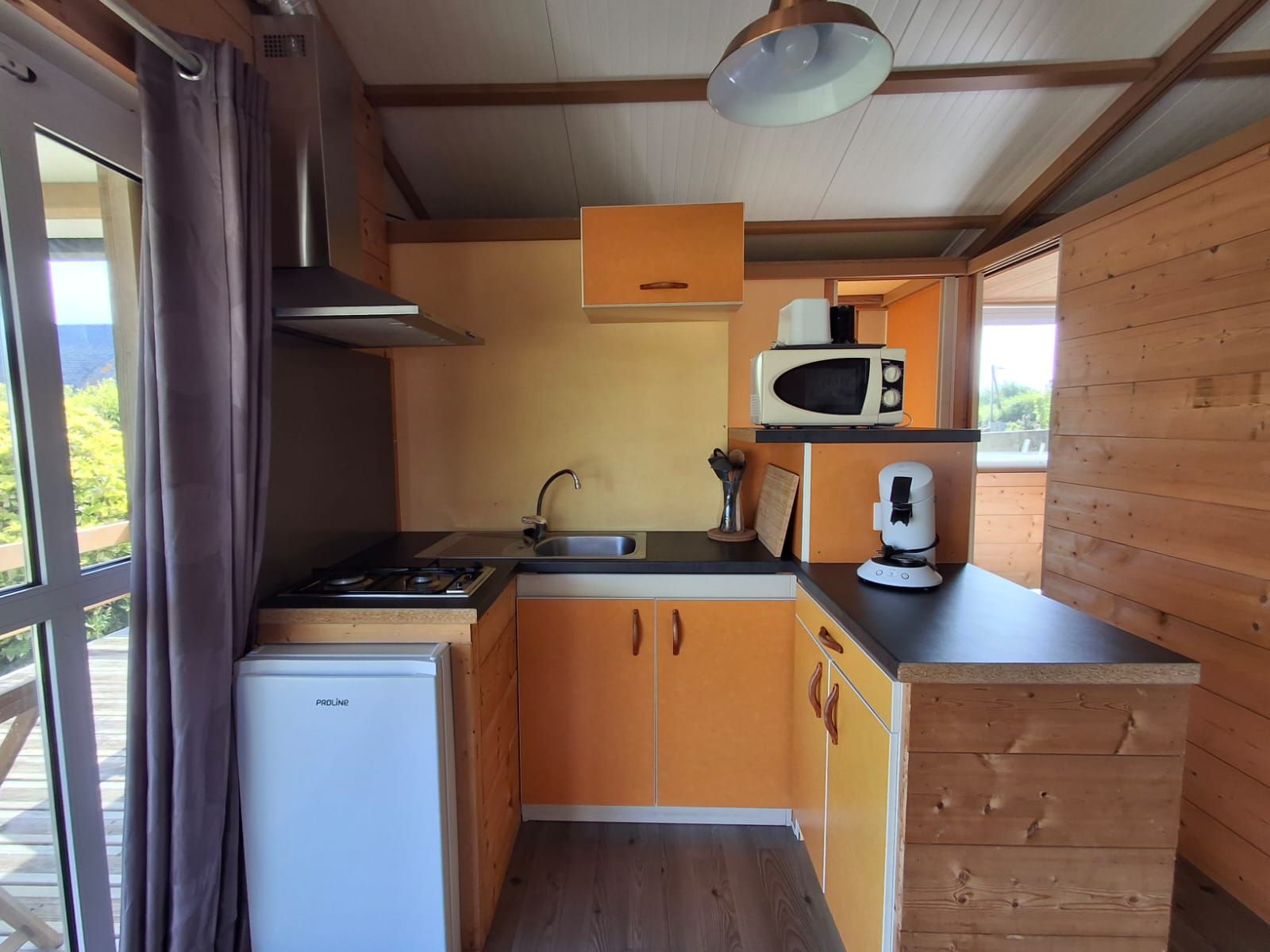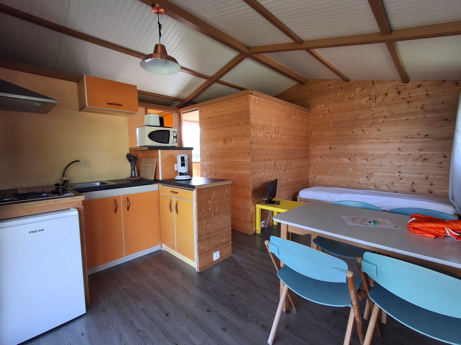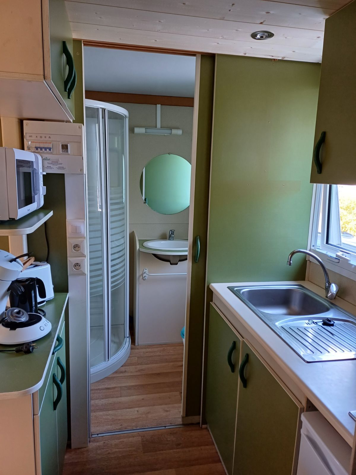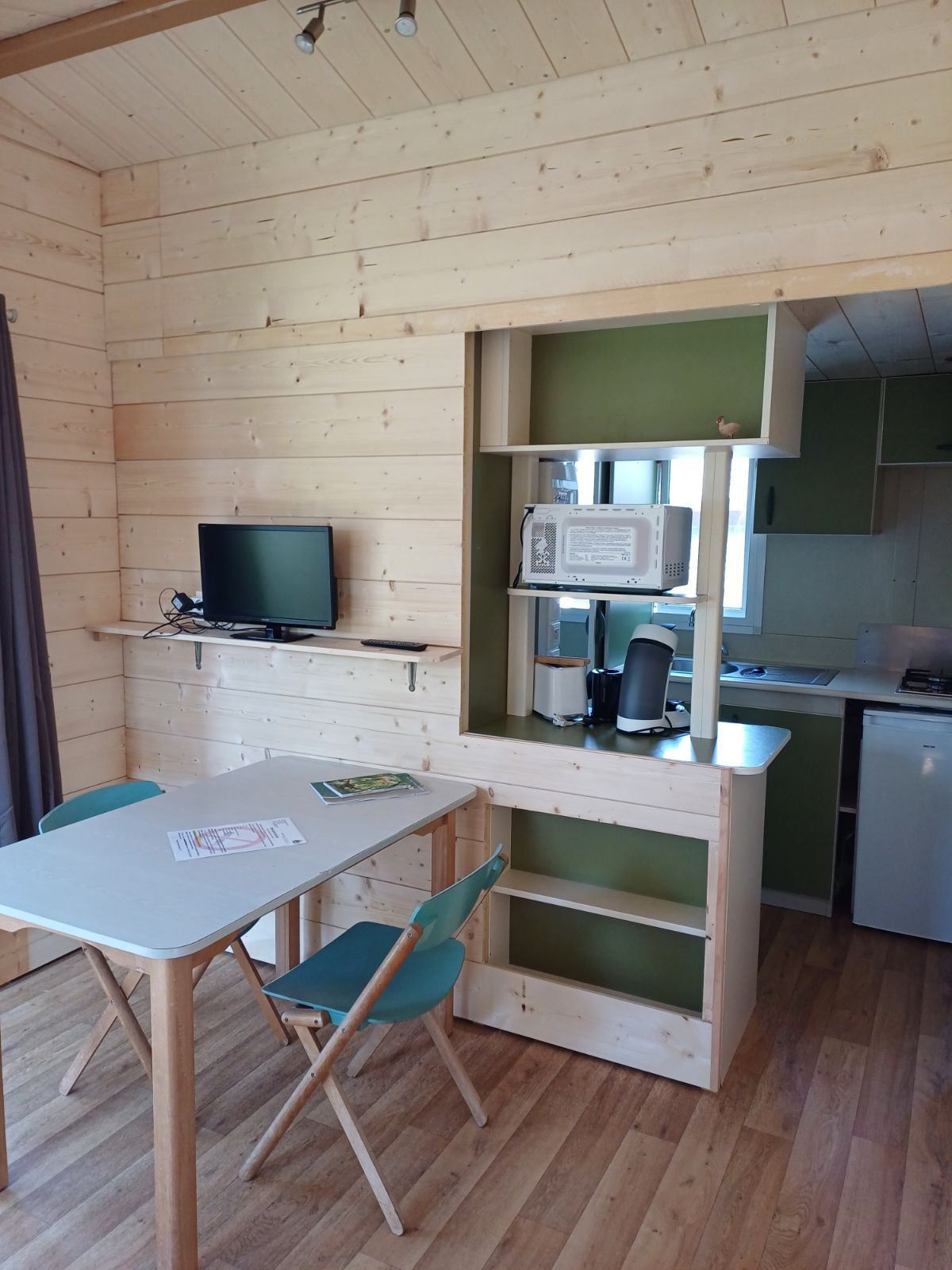 - Une cuisine et un coin séjour