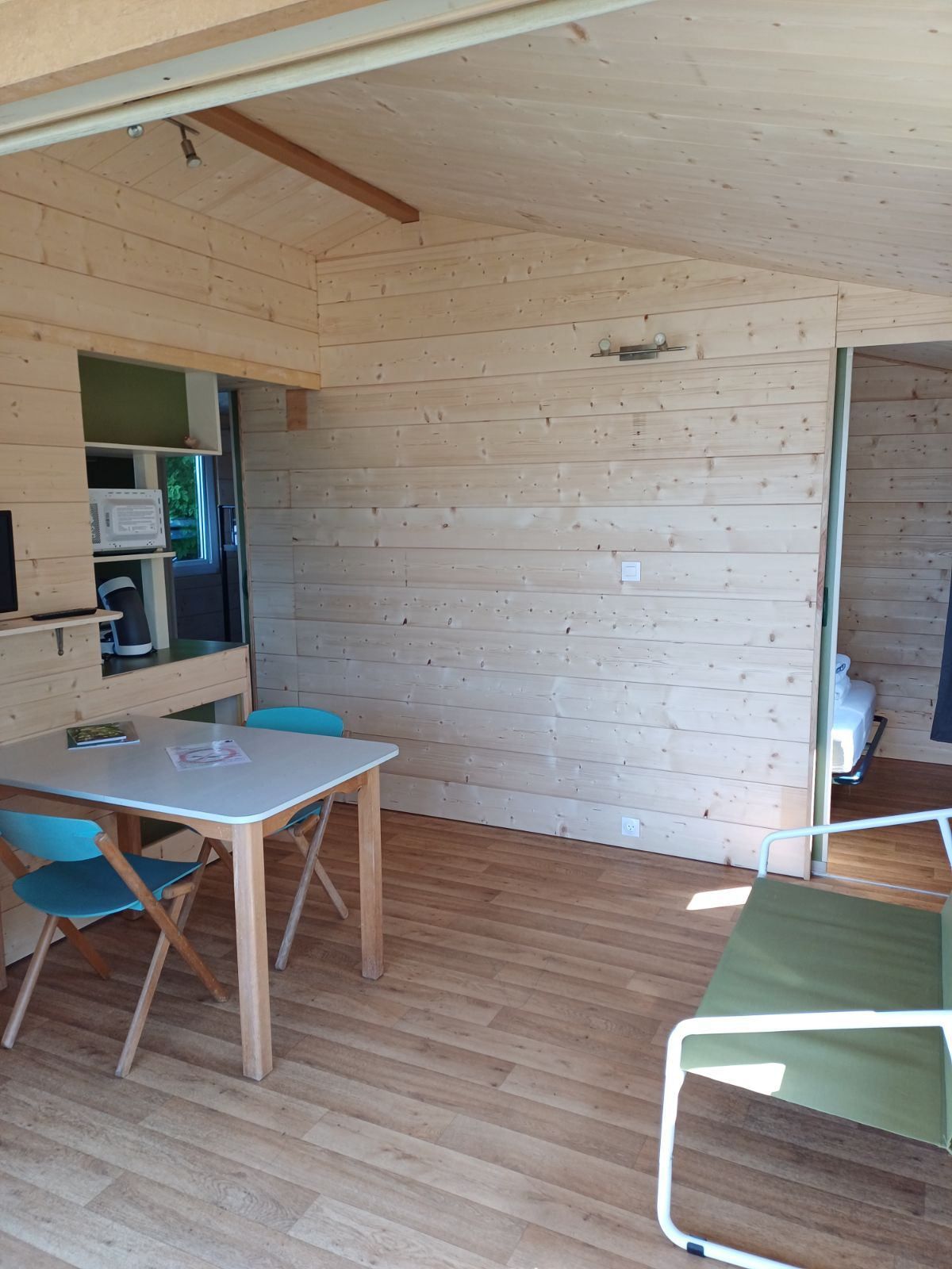 avec coin repas et cuisine équipée, SDB, WC, 2 chambres mais pour le couchage (les lits)