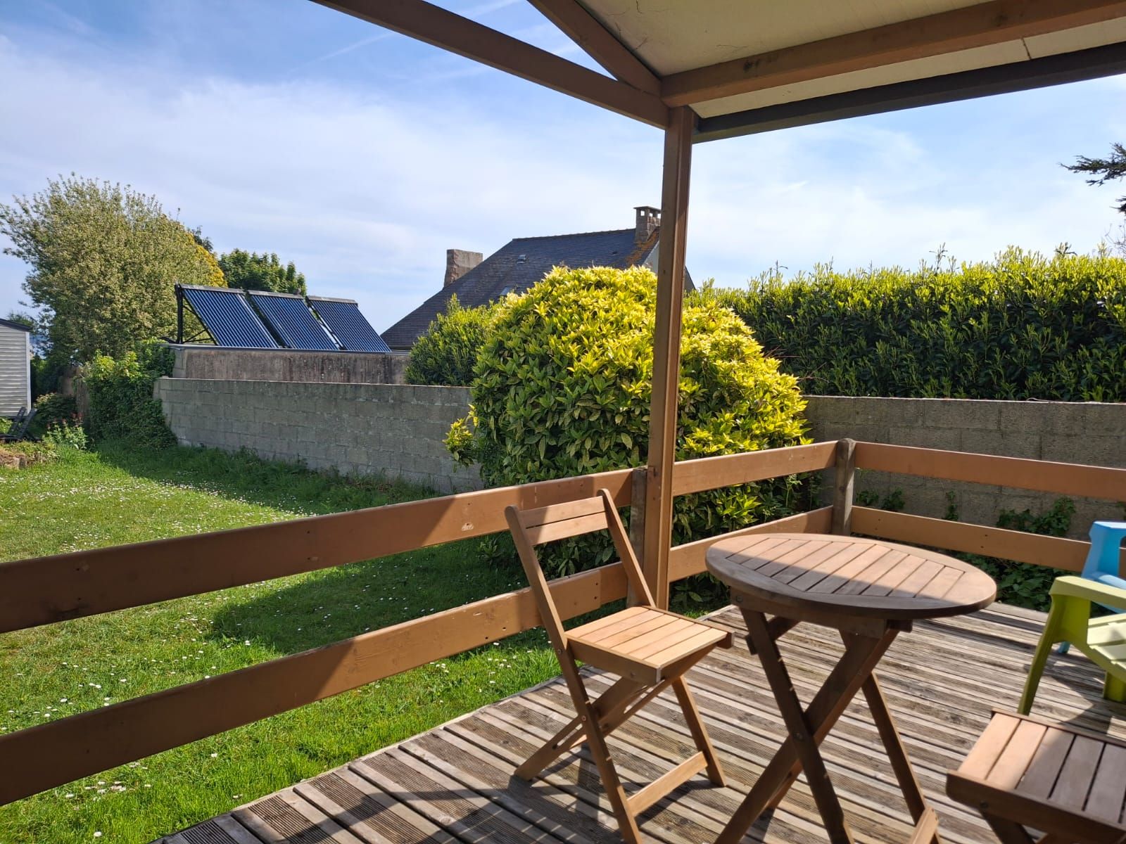 - Une grande terrasse couverte avec une petite vue sur la mer